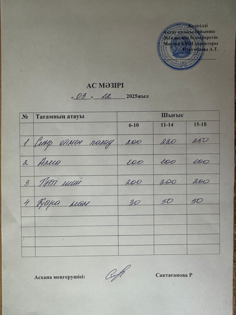 Ас мәзірі 3.12.25 Бағасы әр балаға 600 теңгеDecember 3, 2025December 3, 2025 Leave a Reply Cancel replyYour email address will not be published. Required fields are marked *Name * Email * Website Comment * Save my name, email, and website in this browser for the next time I comment.